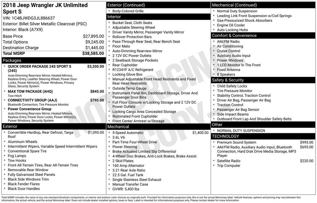 2018 Jeep Wrangler JK Unlimited Sport