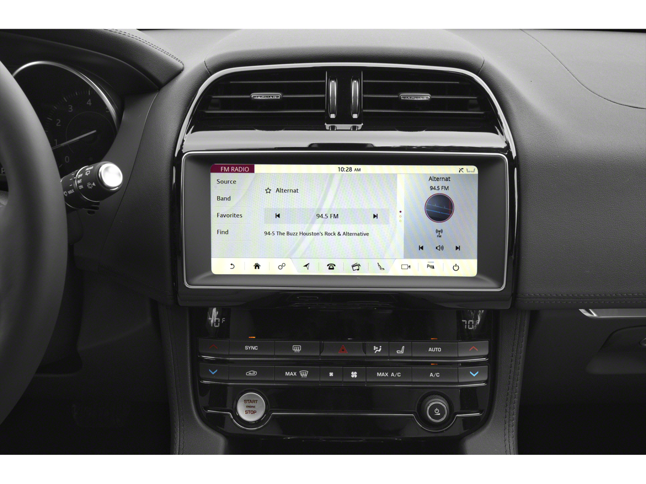- Radio: Meridian 380W Sound System -inc: HD Radio, InControl Remote (including remote climate control, lock and unlock and beep and flash), InControl Protect (including SOS emergency call, Jaguar optimized assistance call and stolen vehicle locator), analog dials w/central 5" TFT display, USB, 12V socket in center console additional power sockets (auxiliary power socket x2), dynamic volume control, Bluetooth® connectivity and streaming, ECO driving style assistant, 10" touchscreen, Apple CarPlay and Android Auto