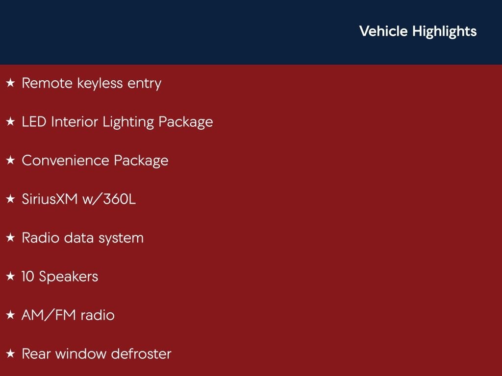 Feature availability subject to final vehicle configuration. Please reference window sticker for more info.