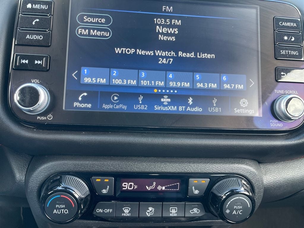 - Radio: AM/FM Audio System -inc: 8" color touchscreen display w/6 speakers, Bluetooth® hands-free phone system, streaming audio via Bluetooth®, Siri eyes free, audio and Bluetooth® steering wheel switches, 3 USB ports (1x front charge and data and 2x rear charge only), type C USB (data and charge) (front), NissanConnect featuring Apple CarPlay, Android Auto, SiriusXM satellite radio w/advanced audio features and hands-free text messaging assistant