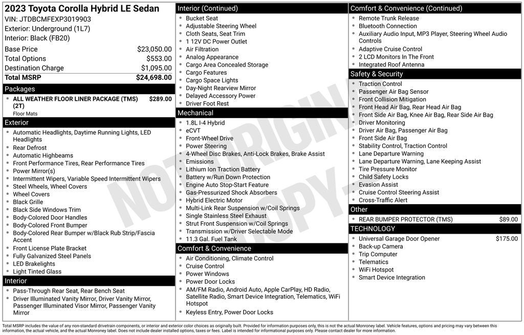 2023 Toyota COROLLA HYBRID LE