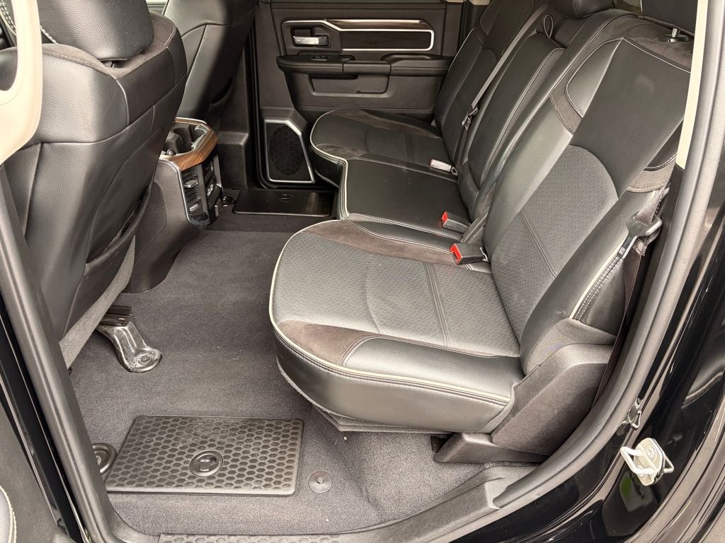 Diamond Black Crystal Pearlcoat Laramie 4WD 6-Speed Automatic Cummins 6.7L I6 Turbodiesel Sunroof / Moonroof, Back Up Camera, Bluetooth®, 10 Speakers, 115V Auxiliary Rear Power Outlet, 12 Touchscreen Display, 220 Amp Alternator, 2nd Row In Floor Storage Bins, 3.73 Axle Ratio, 4-Wheel Disc Brakes, 4G LTE Wi-Fi Hot Spot, 5th Wheel/Gooseneck Towing Prep Group, ABS brakes, Active Noise Control System, Alexa Built-In, AM/FM radio: SiriusXM with 360L, Apple CarPlay/Android Auto, Auto Adjust In Reverse Exterior Mirrors, Auto Dimming Exterior Passenger Mirror, Auto High Beam Headlamp Control, Auto Power-Folding Mirrors, Auto-Dimming Exterior Mirrors, Automatic temperature control, Bed Utility Group, Blind Spot & Cross Path Detection, Brake assist, Bright Front Bumper, Bright Rear Bumper, Center Hub, Chrome Bumper Package, Chrome Exterior Mirrors, Clearance Lamps, Connected Travel & Traffic Services, Connectivity - US/Canada, Disassociated Touchscreen Display, Dual front impact airbags, Dual front side impact airbags, Dual Rear Wheels, Electronic Stability Control, Exterior Mirrors Courtesy Lamps, Exterior Mirrors w/Heating Element, Exterior Mirrors w/Memory, Exterior Mirrors w/Supplemental Signals, Foam Bottle Insert (Door Trim Panel), For Details Visit DriveUconnect.com, Forward & Reverse Utility Lights, Front anti-roll bar, Front Center Armrest w/Storage, Front dual zone A/C, Front LED Fog Lamps, Front Seat Back Map Pockets, Fully automatic headlights, GPS Navigation, Heated door mirrors, Heated Front Seats, Heated Steering Wheel, Integrated Voice Command w/Bluetooth®, Laramie Level 1 Equipment Group, Leather Trim 40/20/40 Bench Seat, LED Bed Lighting, LED Reflector Headlamps, LED Tail Lamps, Low tire pressure warning, Mirror Running Lights, MOPAR Deployable Bed Step, MOPAR Spray In Bedliner, Navigation System, Occupant sensing airbag, Off-Road Information Pages, Overhead airbag, ParkSense Front/Rear Park Assist System, ParkView Rear Back-Up Camera, Power Adjust 8-Way Driver Seat, Power Adjust Mirrors, Power Adjustable Pedals w/Memory, Power driver seat, Power Heat Fold Memory Telescopic Mirrors, Power passenger seat, Power Sunroof, Power Telescoping Mirrors, Power-Adjustable Convex Aux Mirrors, Quick Order Package 2HH Laramie, Radio: Uconnect 5 Nav w/12.0 Display, Rain Sensitive Windshield Wipers, Rear 60/40 Folding Seat, Rear Power Sliding Window, Rear Window Defroster, Remote keyless entry, Remote Tailgate Release, Security system, Selectable Tire Fill Alert, Speed control, Tilt steering wheel, Traction control, Trailer Tow Pages, Variably intermittent wipers, Wheels: 17 x 6.0 Polished Aluminum.